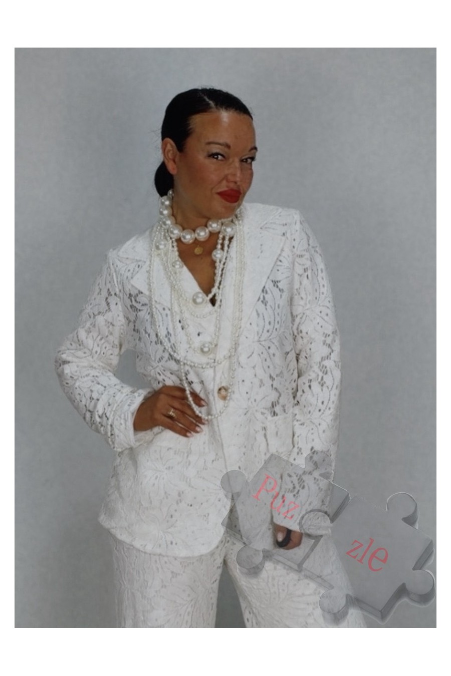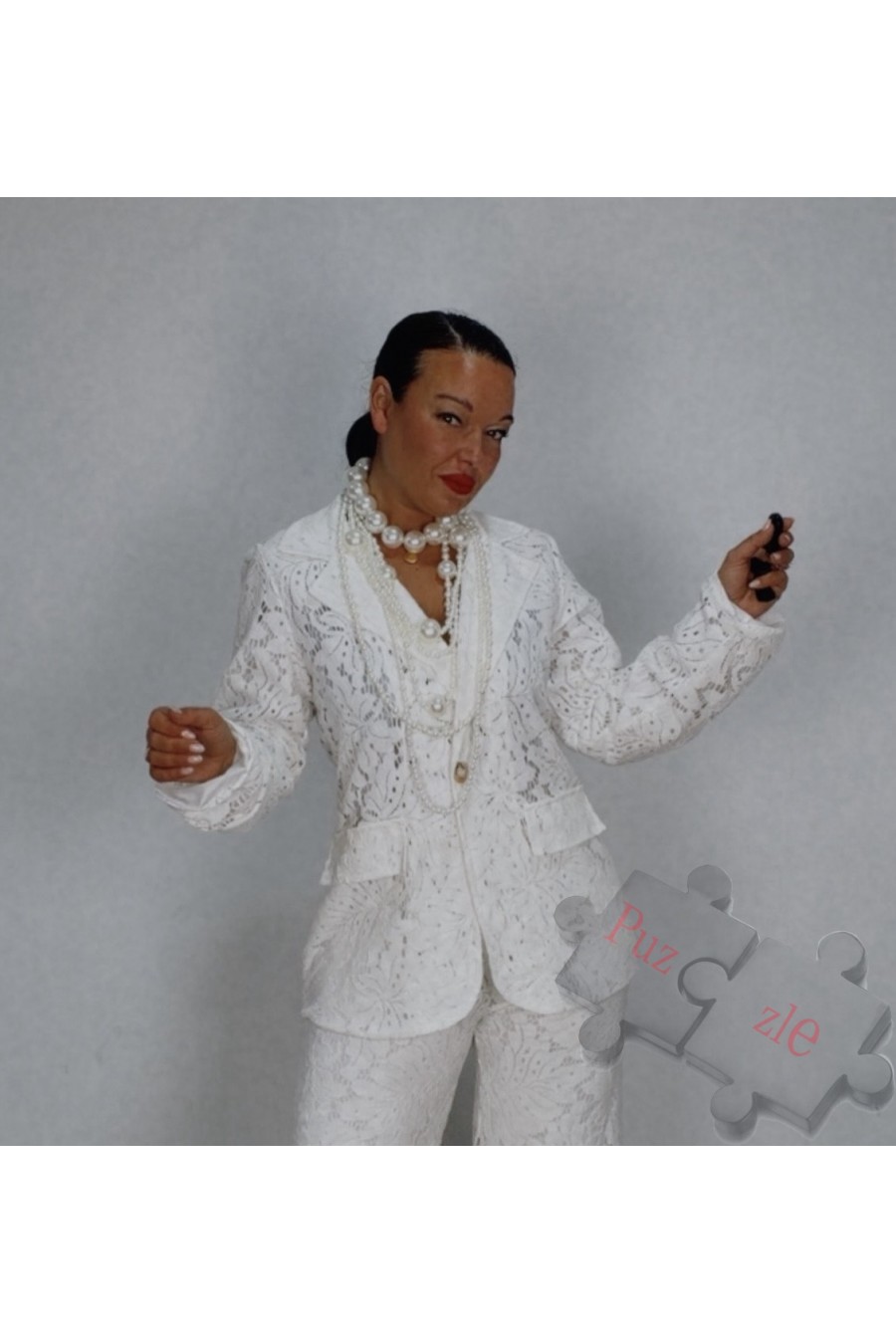 Chaqueta de encaje en tono blanco , disponible en talla única