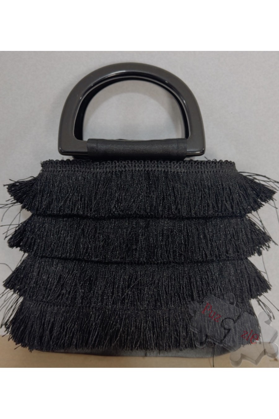 Camisa en tono negro con detalles de flecos en la parte delantera