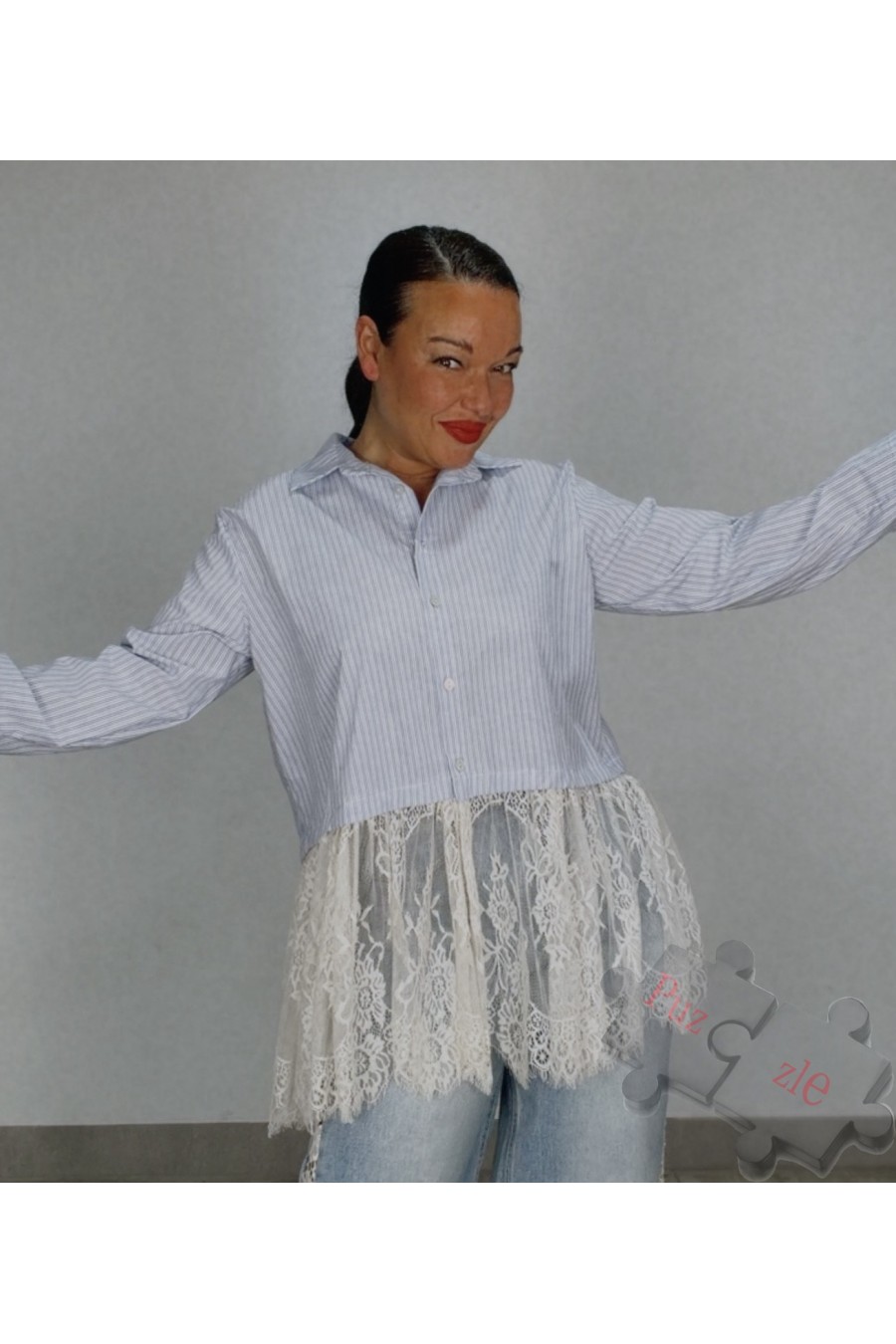 Camisa de rayas con encaje , disponible en talla unica