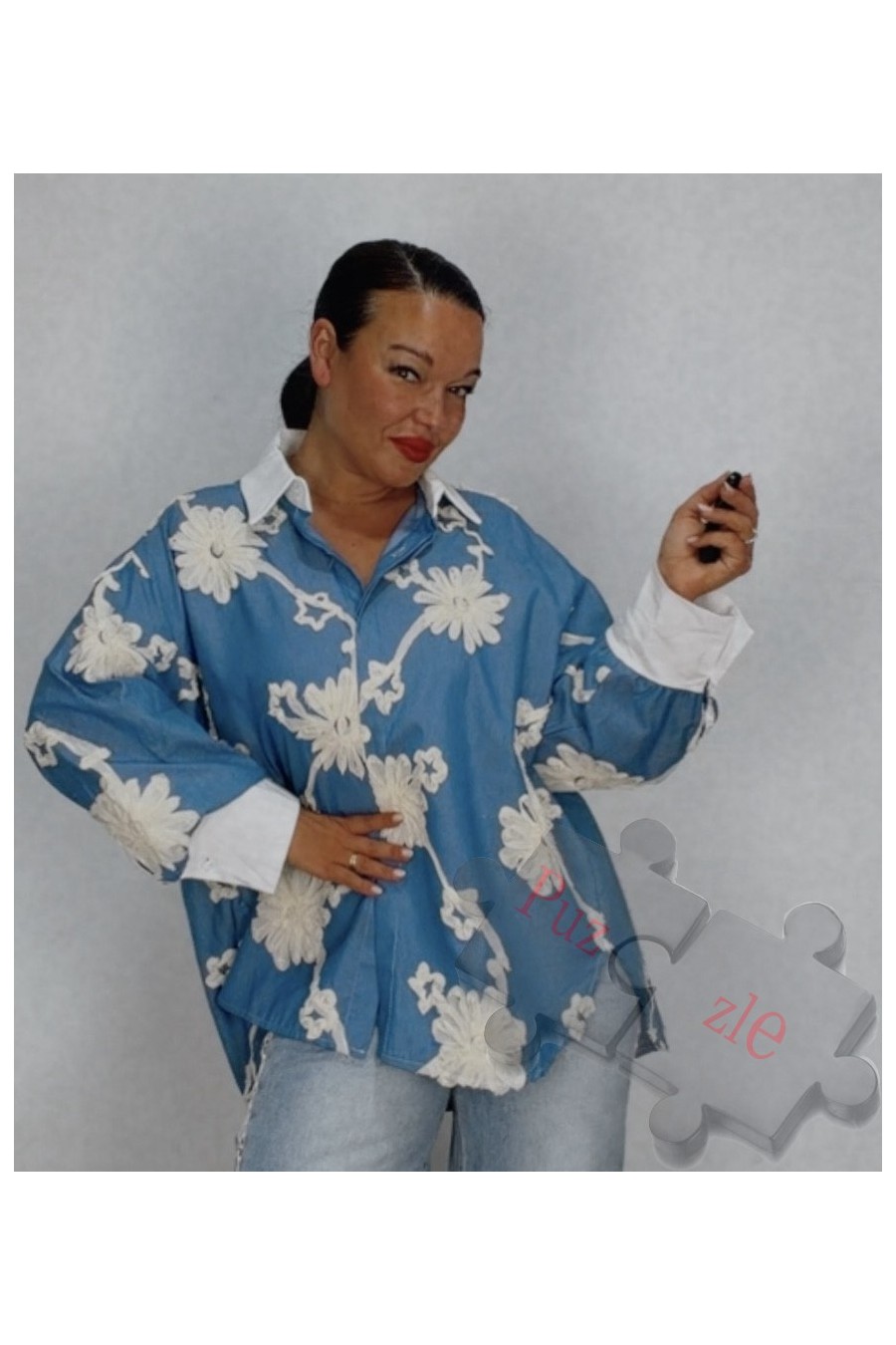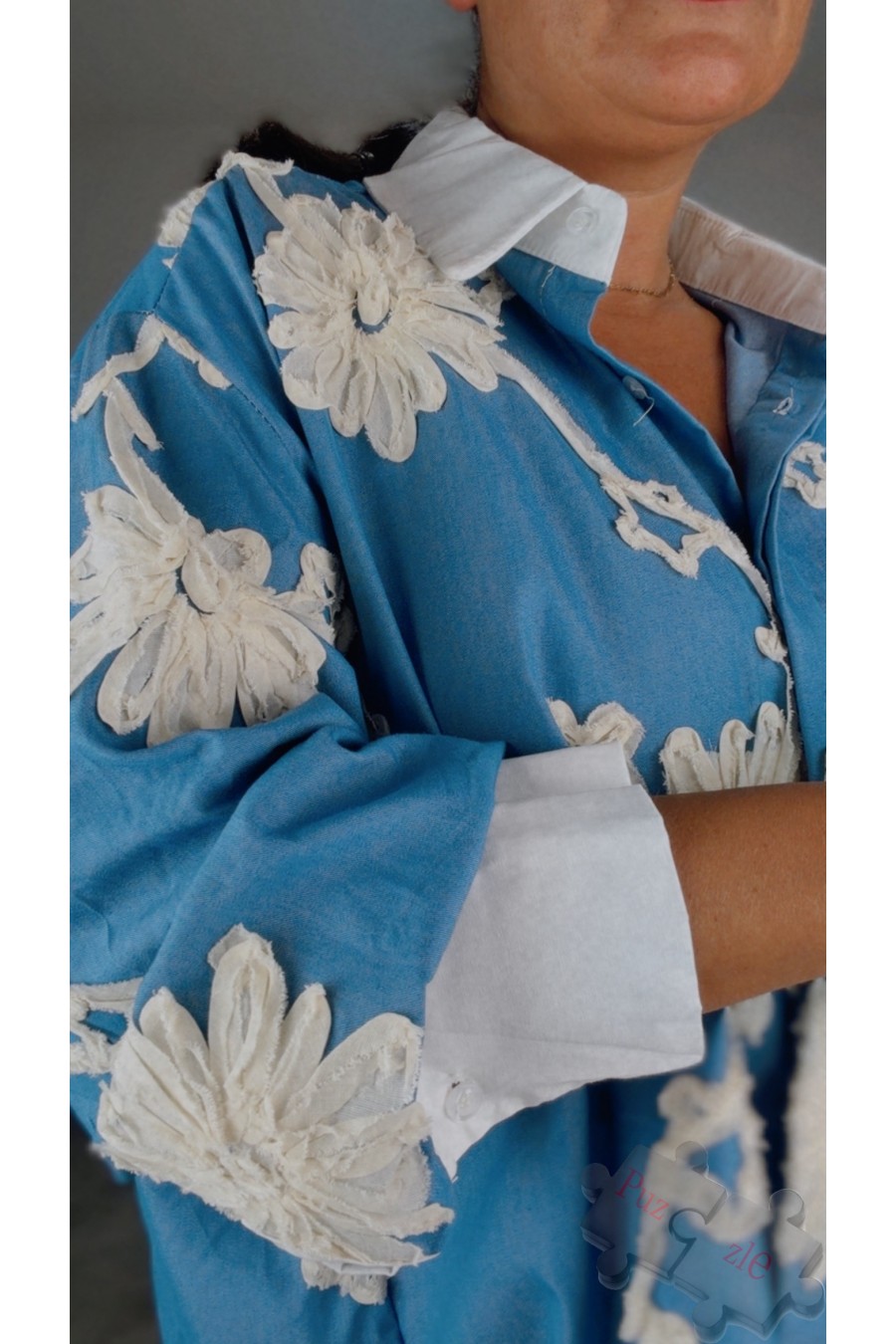Camisa blanca con perforados en la parte delantera , disponible en talla única