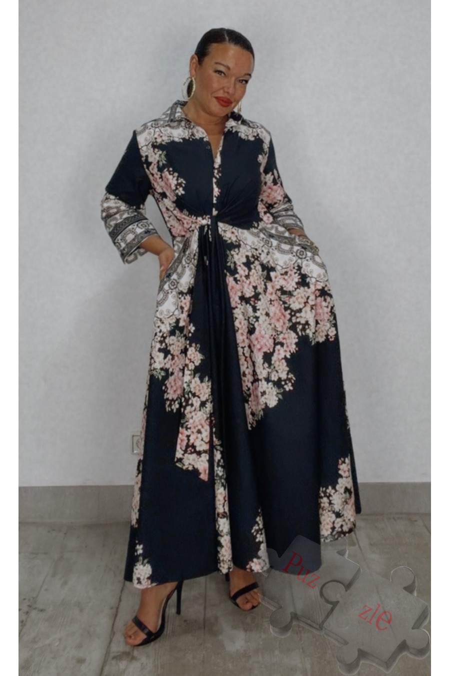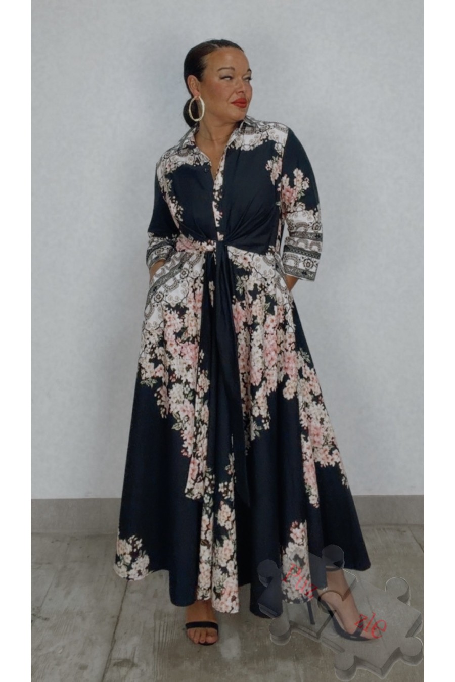 Vestido de punto frío en tono negro con lunar en blanco , disponible en talla única