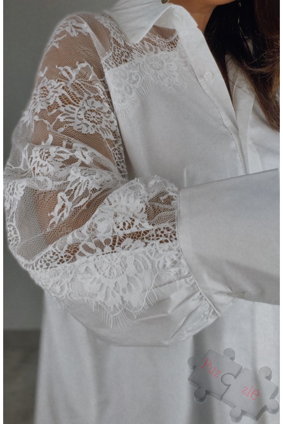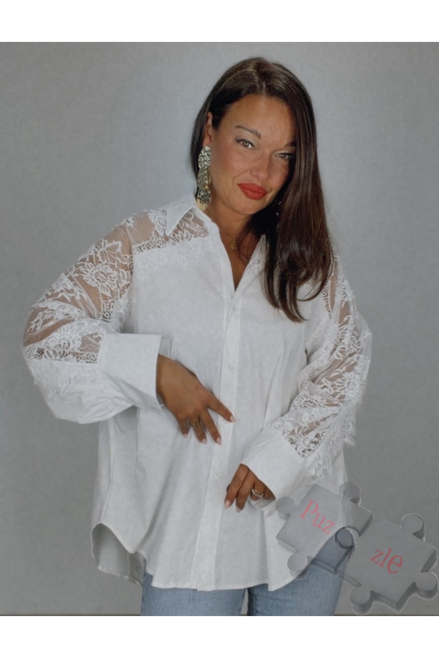 Camisa blanca con encaje en las mangas, disponible en talla única