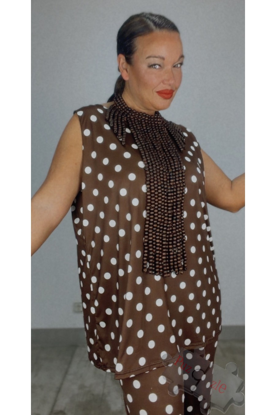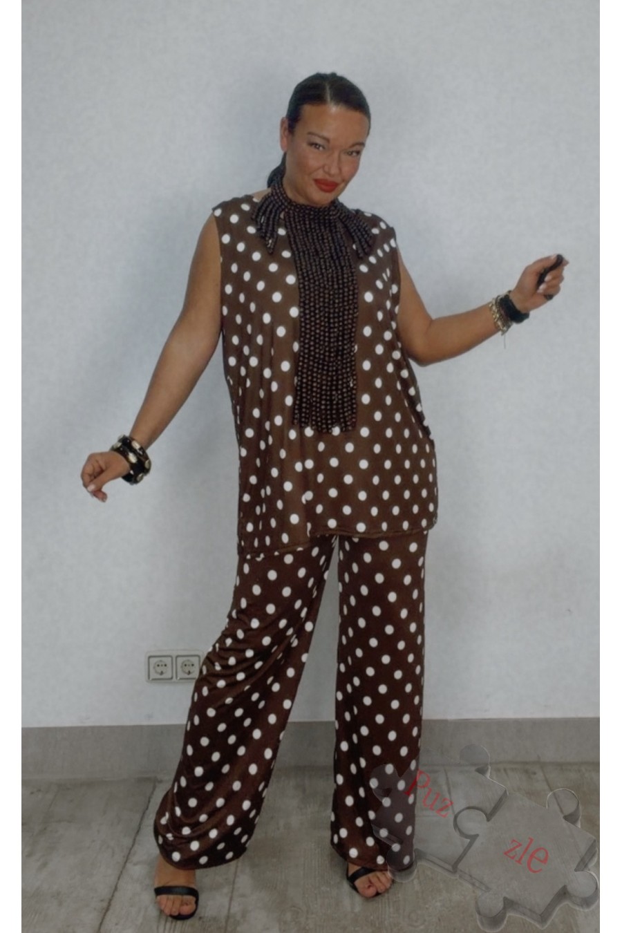 Conjunto de punto frío en tono marrón con lunar blanco , disponible en talla única