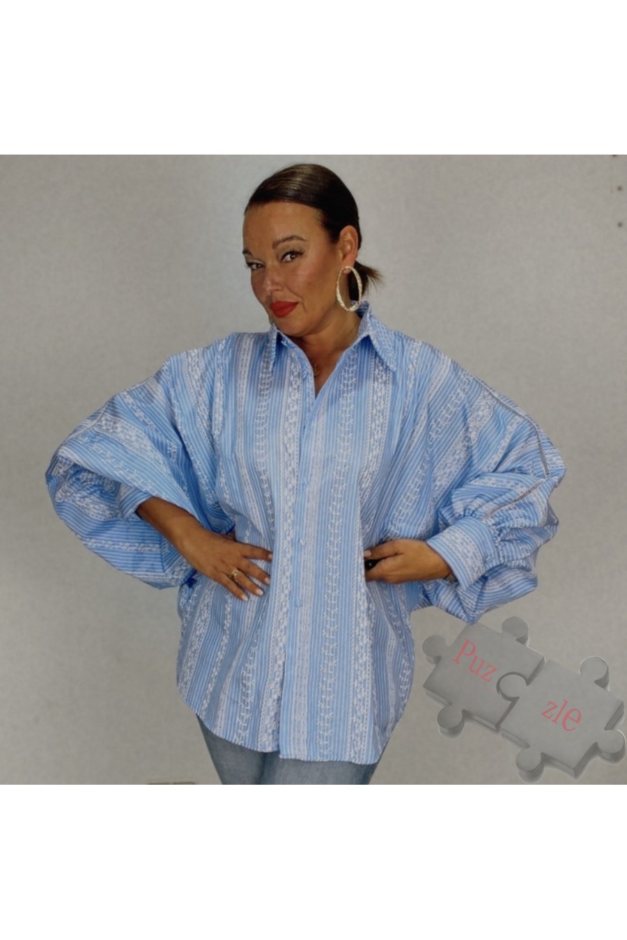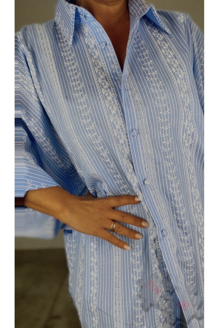 Camisa oversize en azul cielo con bordados en blanco , disponible en talla unica