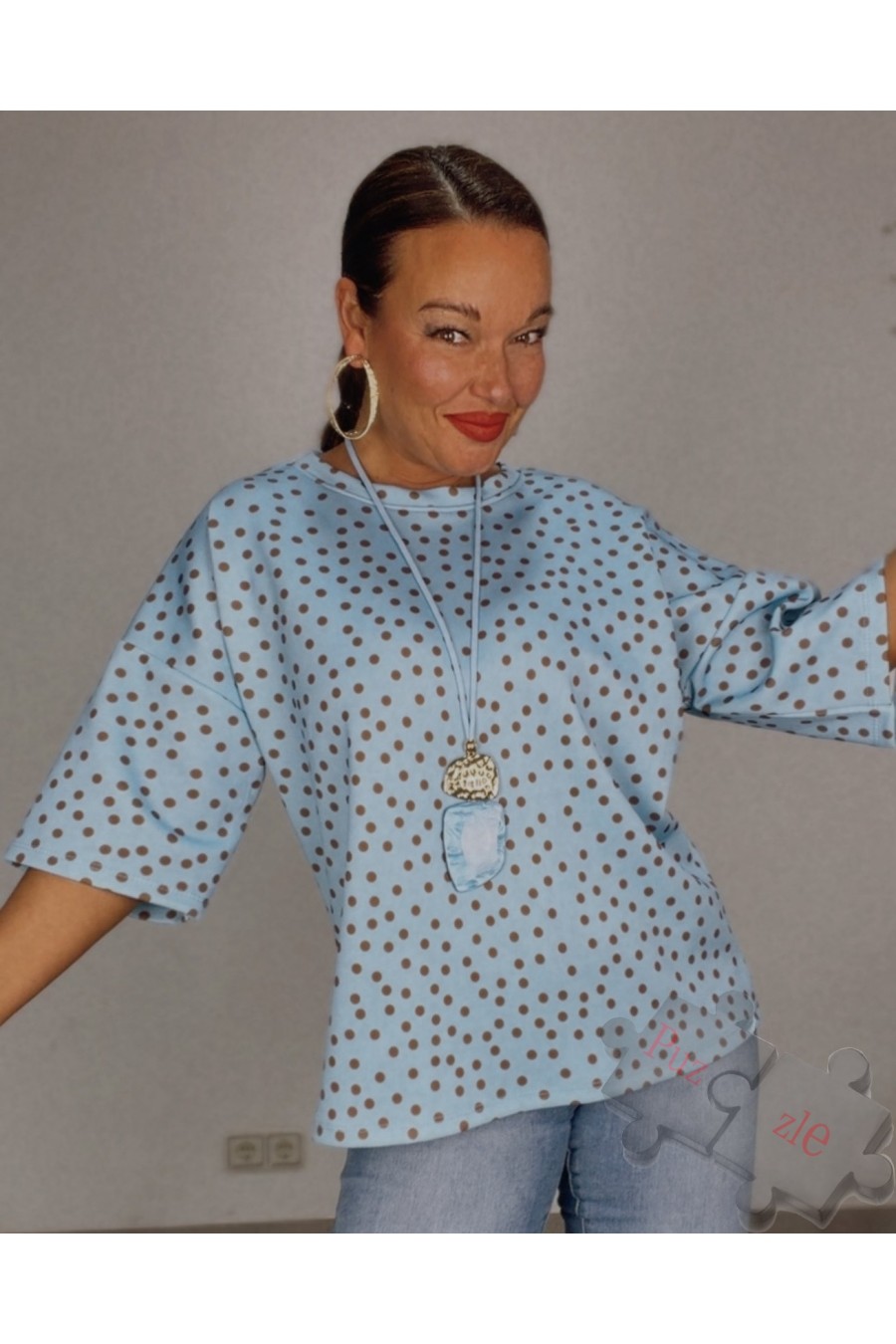 Sudadera en tono celeste con lunar en marrón , disponible en talla única