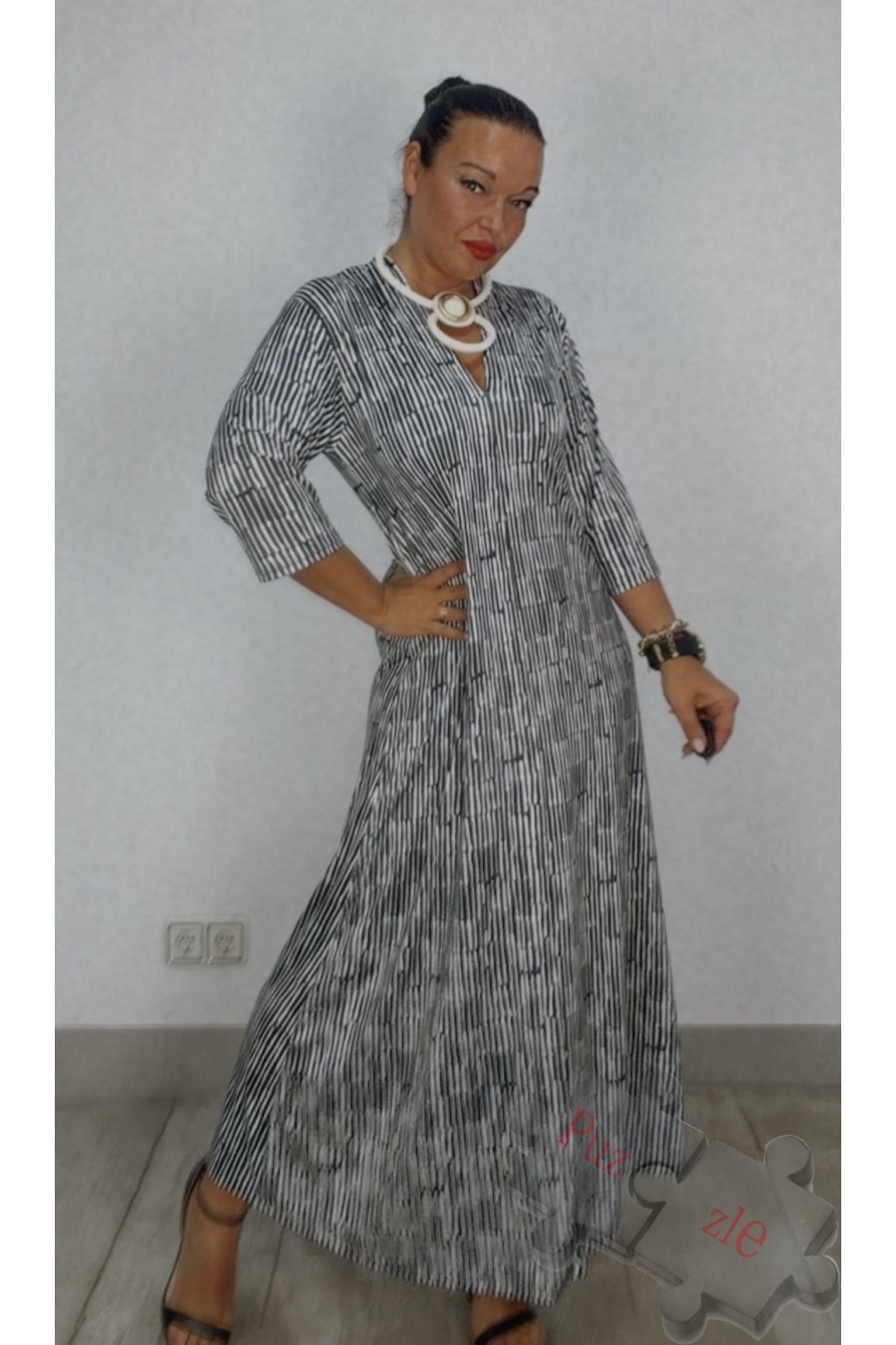 Vestido de punto frío en tono blanco y negro con escote de pico , disponible en talla única