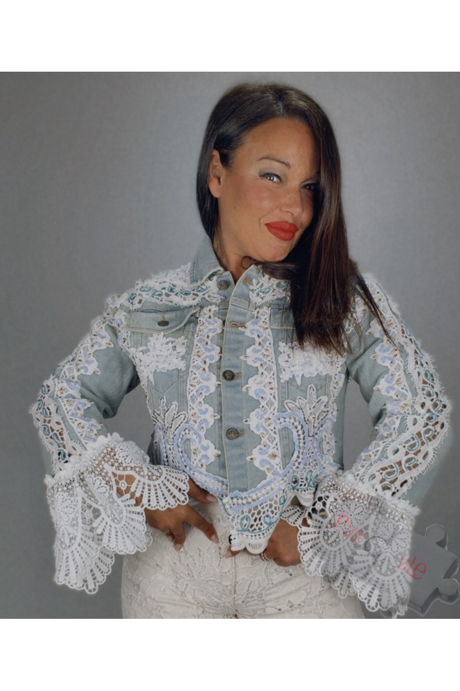 Chaqueta tejana con encaje , disponible en tallas