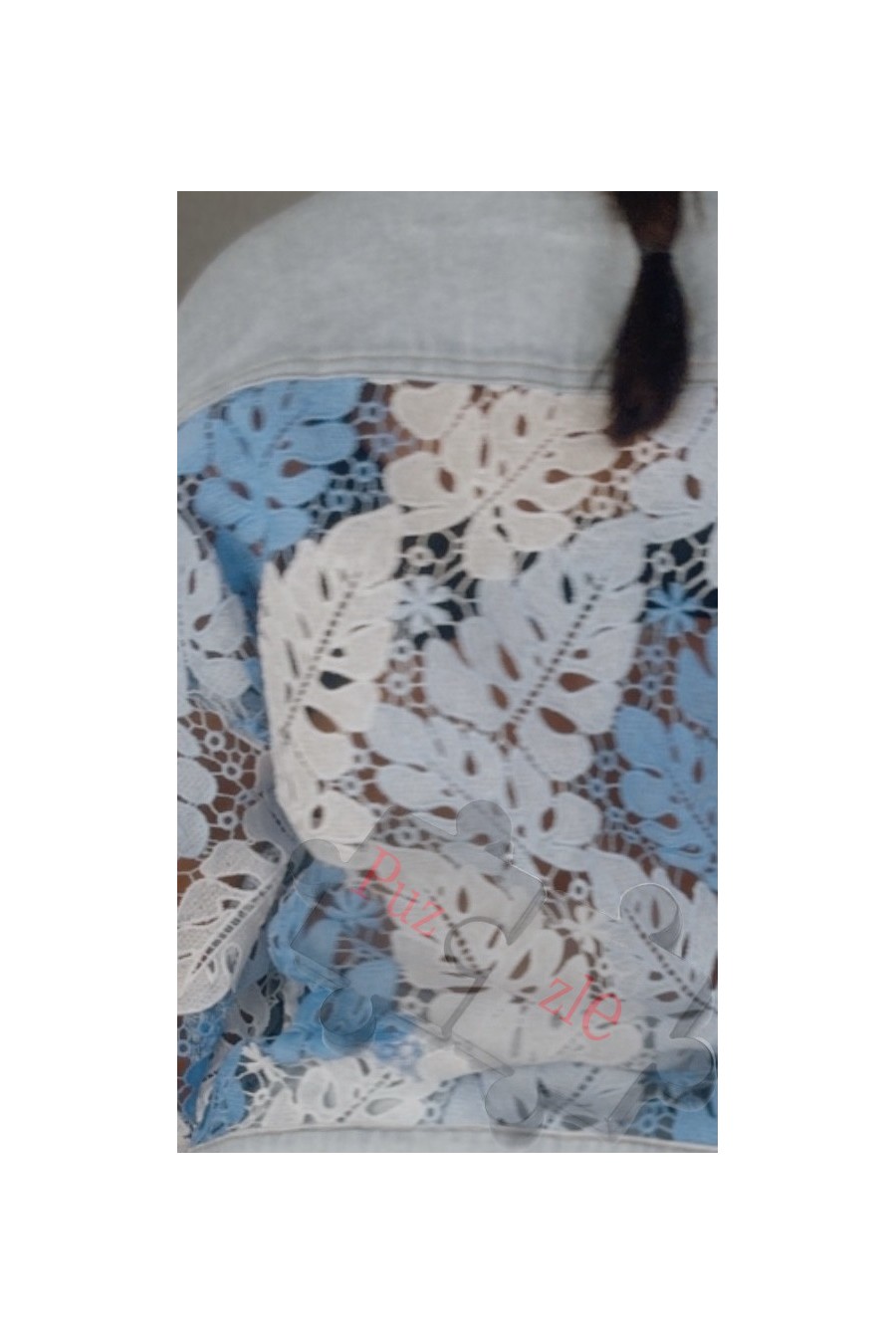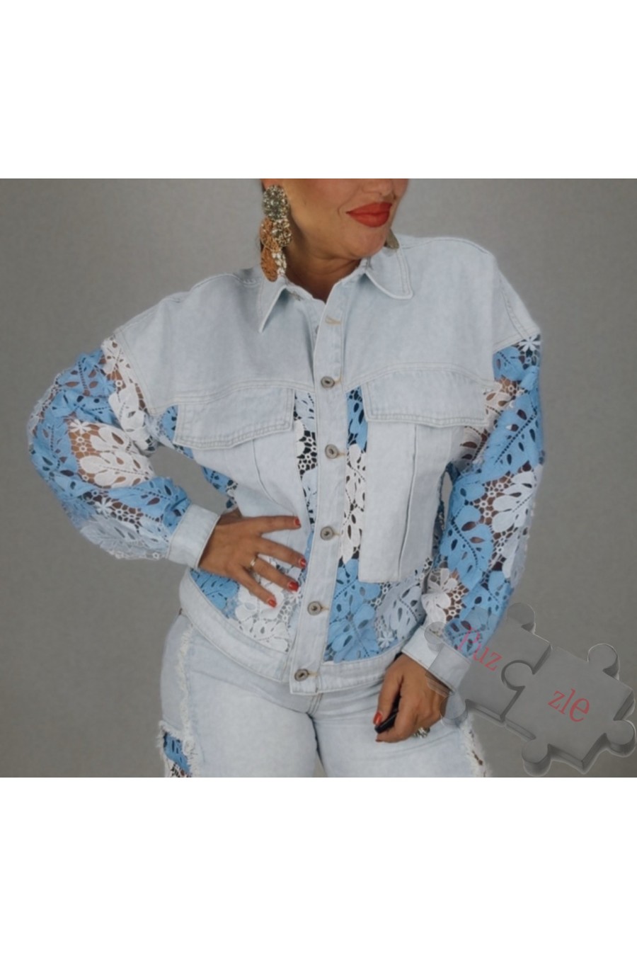 Chaqueta de corte militar , en tono azul marino con flores, disponible en tres tallas