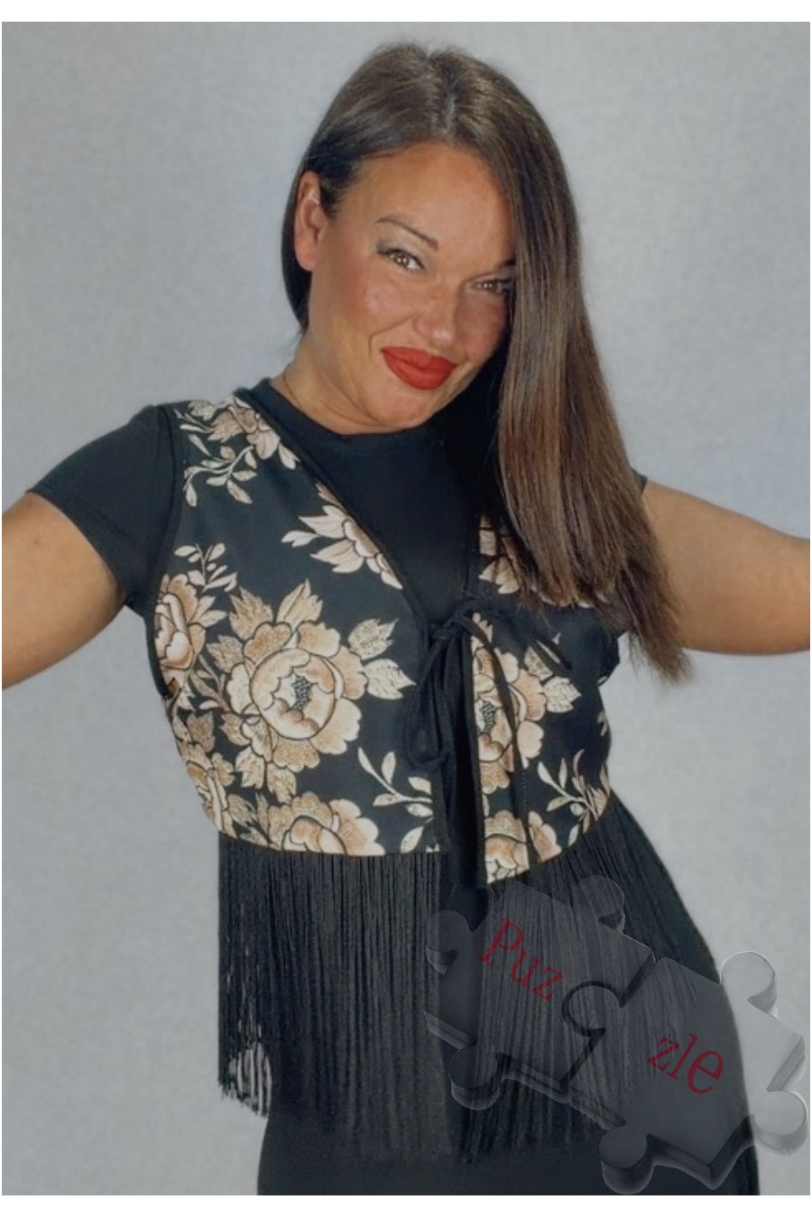 Chaleco estampado con flecos , disponible en dos tallas