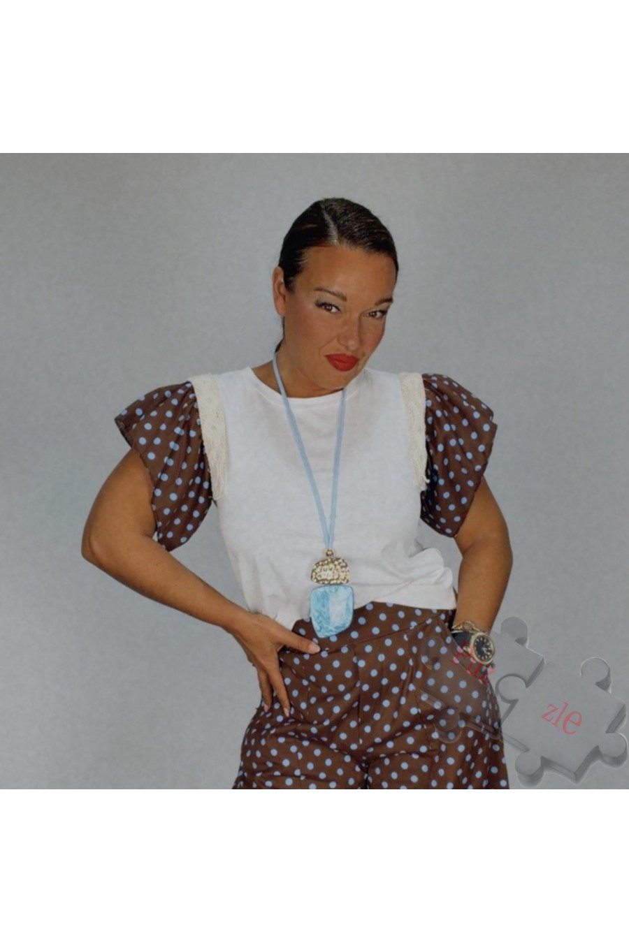 Camisa en tono crudo con detalles en la parte delantera , disponible en talla única