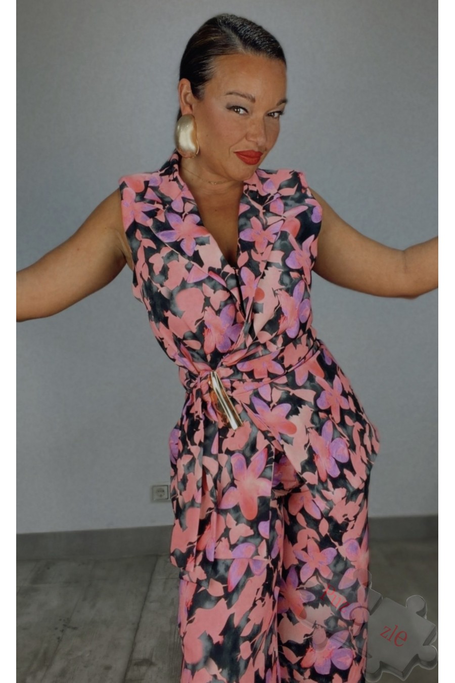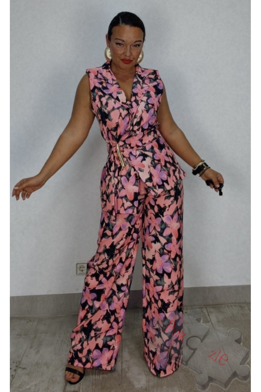 Conjunto de pantalon y chaleco estampado , disponible en talla única