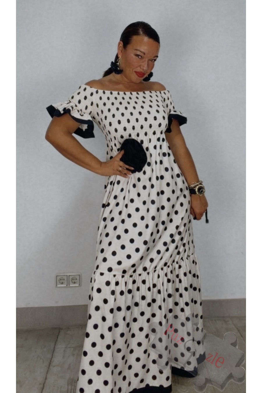 Vestido de lunares en tono blanco roto con negro, disponible en talla única