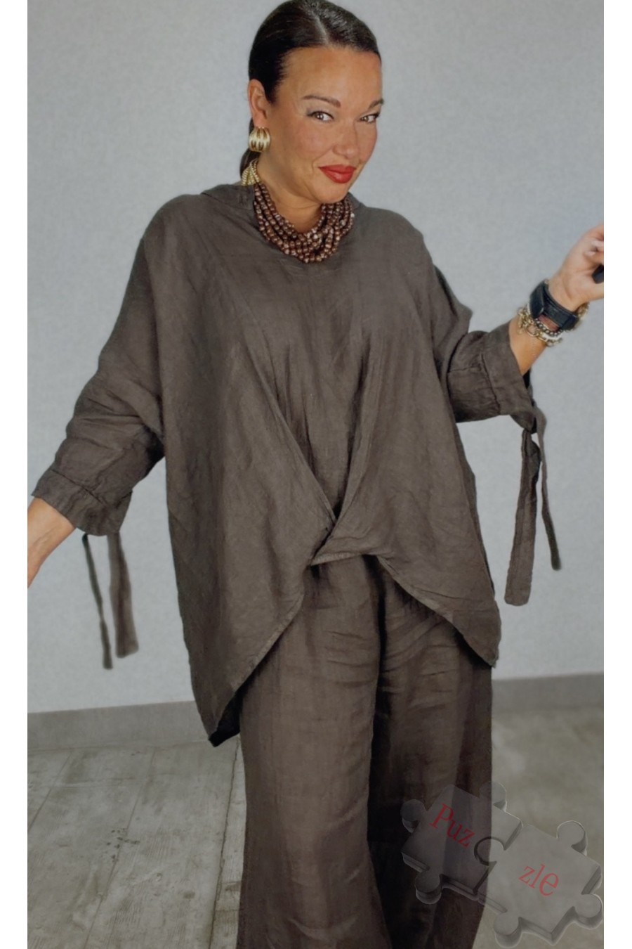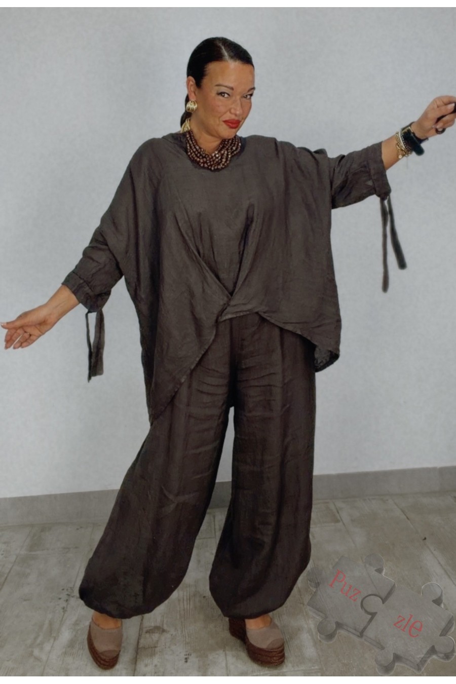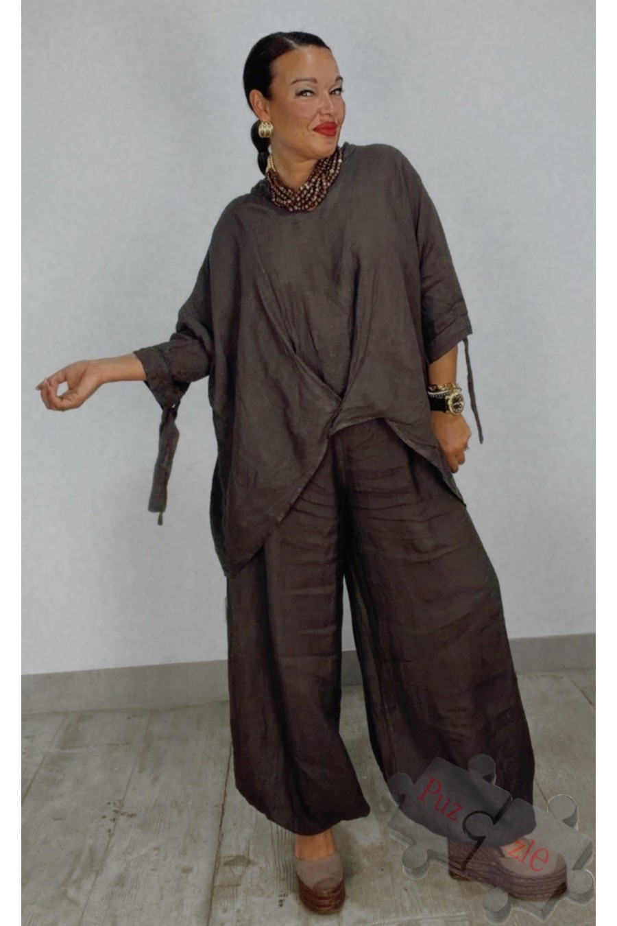Pantalón de lunares en tono marrón con lunares en azul , disponible en talla unica