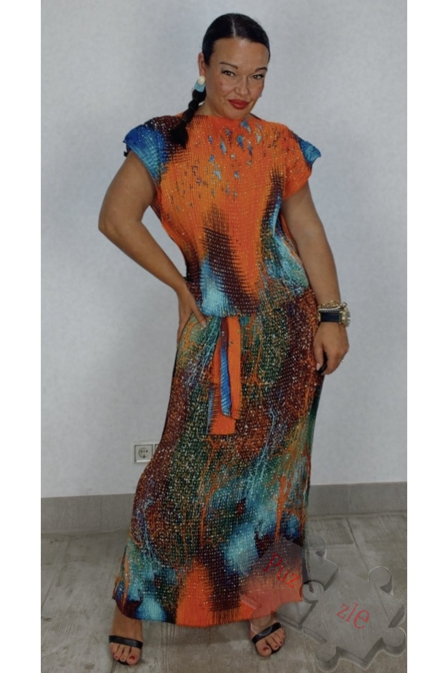 Vestido de tejido acordeón disponible en talla unica